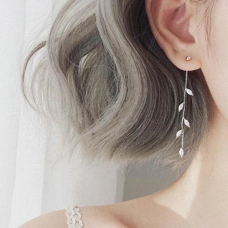 HUMMING Stylish Long Drop Earrings in Silver and Gold Tones, featuring Sparkling Zircon or Crystal Accents
